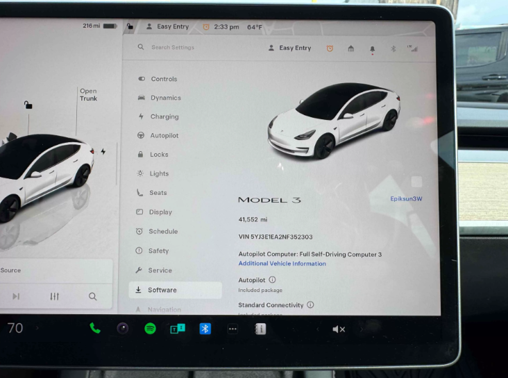 Tesla Autopilot including Automatic Emergency Braking, Front Collision Mitigation, and lane keeping assistance