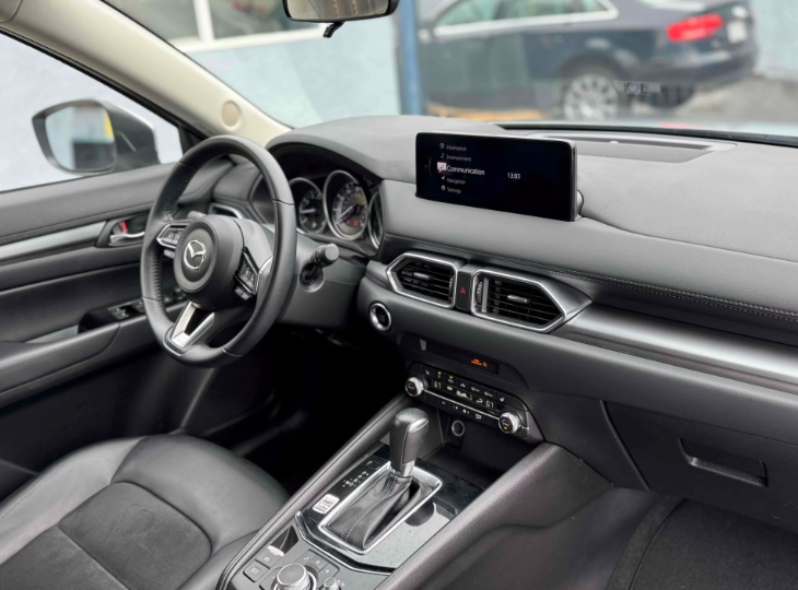 Drive with confidence and refined style in this 2023 Mazda CX-5 2.5 S Select Package AWD, finished in elegant Sonic Silver Metallic with a sleek Black leatherette interior. Designed for drivers who appreciate comfort, performance, and safety, this compact SUV is powered by a 2.5L 4-cylinder engine producing 187 horsepower and 186 lb-ft of torque, paired with a smooth 6-speed automatic transmission. Mazda’s intelligent All-Wheel Drive system enhances traction and stability, while impressive efficiency delivers nearly 30 MPG on the highway.